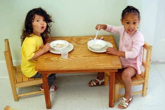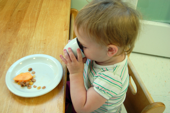 Self-serve snack allows children the opportunity learn to listen to their bodies and determine when they are hungry and how much they would like to eat. |